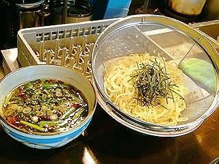 本日昼営業で細麺と牛スジが売切れてしまいました。申し訳ありませんが今夜の営業では、デフォルトで細麺を使用する『あっさり中華そば』は普通麺を『トマト冷麺』には平打ち麺を使用させていただきます。